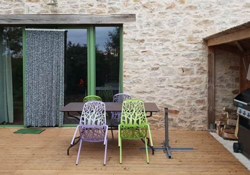 Côté équipements, le gîte dispose d'une télévision avec TNT, d'un lecteur DVD, d'un poêle à bois et d'un lave-vaisselle.